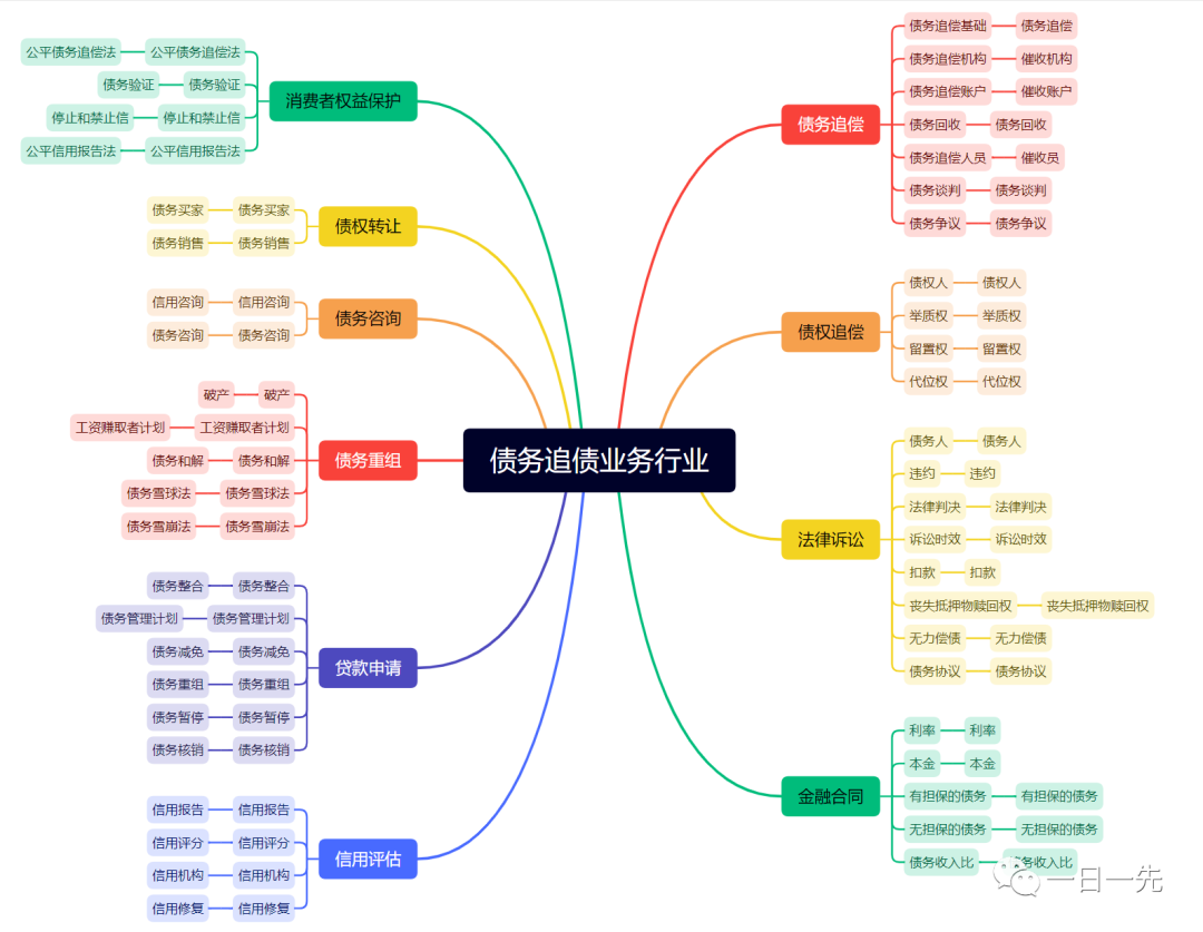 复制代码后另存为md文件,直接导入xmind,得到如下思维导图。当然,这只是一个初步的基于关键字形成的行业框架。