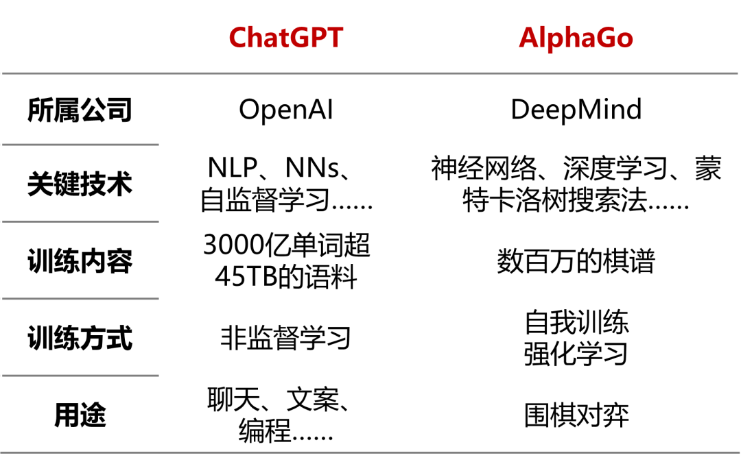 上图:ChatGPT与AlphaGO比较(笔者手绘)