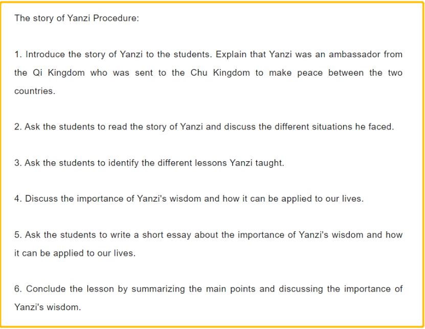 拿中国风《晏子》的故事为例,这是ChatGPT设计的教学步骤,中规中矩。