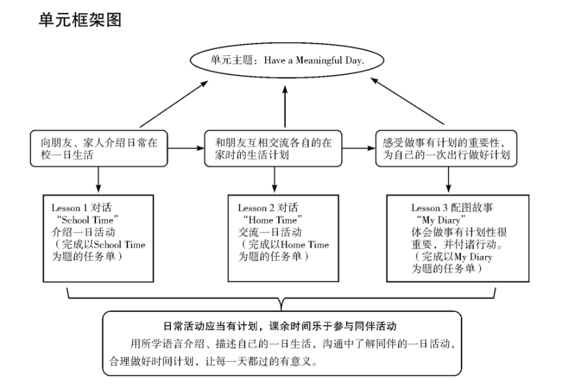 来自北京的于燕岚老师,在教学中结合外研版教材内容与课外绘本,以Have a meaningful day为主题,设计了一个教学框架。