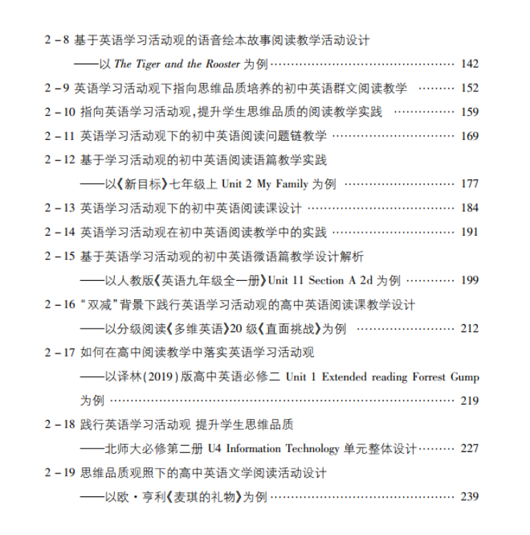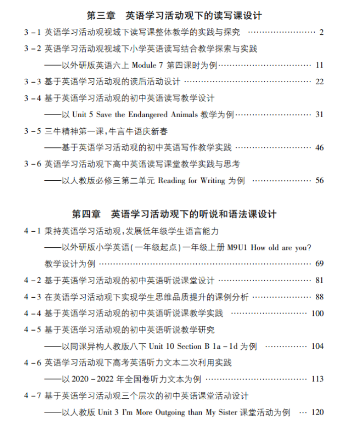 从目录中就可以看出,无论是从单元整体设计,还是从阅读、听说、语法、读写、甚至是综合实践与作业设计,这本书都广泛从全国一线优秀教师中选取了一手案例,为新课标下的英语教学设计,提供了一幅全景的教学图。