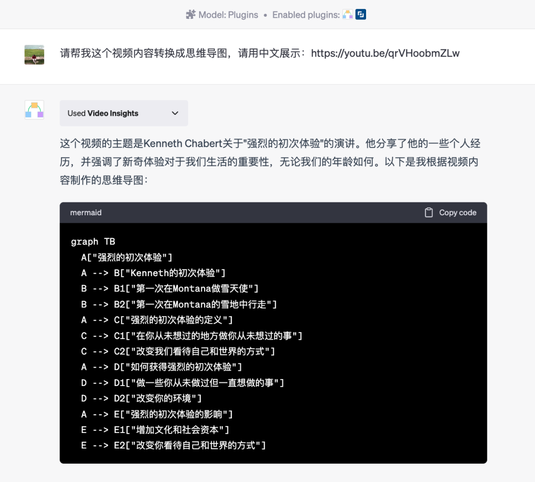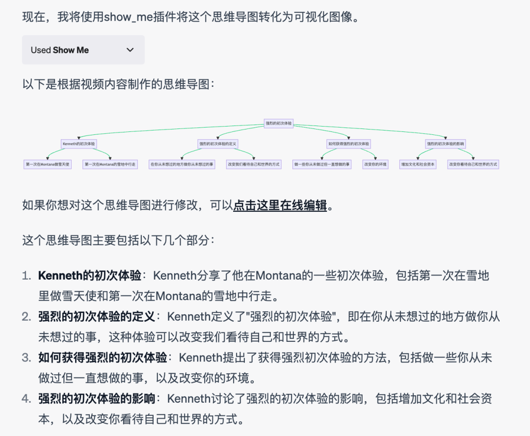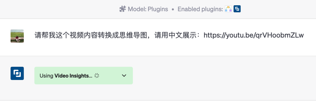 使用方法就是:prompt+视频链接,这里用到了两个插件和联网功能。