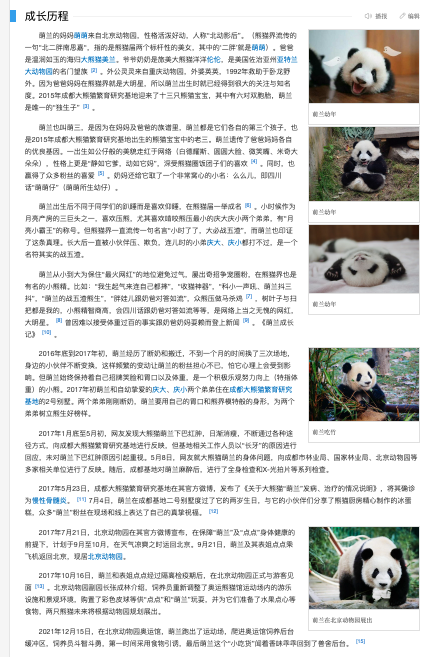 比如我们从百度百科上拿到大熊猫萌兰的资料