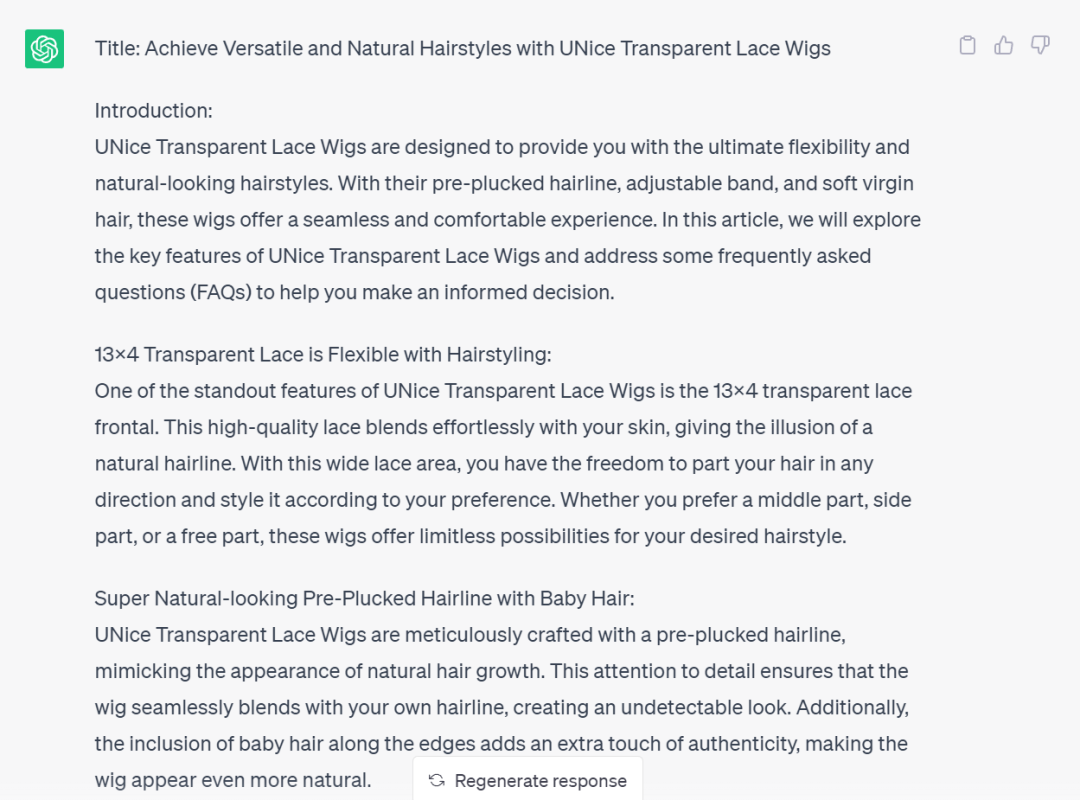 假发产品为例,我从unice网站随便找了个产品详情复制过来