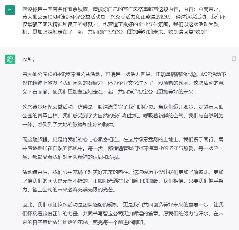 比如: 在GPT中输入-以著名作家余秋雨的风格改写这段内容: