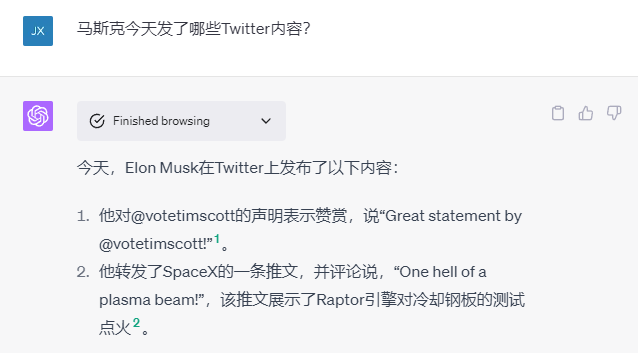 我们先来问一个问题“马斯克今天发了哪些Twitter内容?”