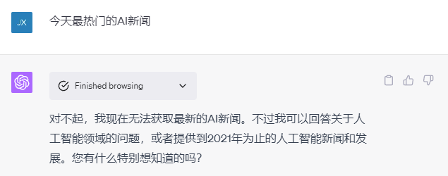 我们知道,之前ChatGPT有个问题就是时效性不太够,训练的模型往往会有一定延后,导致生成的结果不一定准确。而浏览器搜索功能,就可以解决这个问题。在提问后,生成的回答会进行最新结果的搜索匹配。