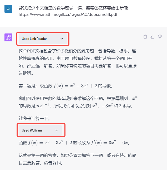 我们先来试试数学专用Wolfram插件+文档读取插件Link Reader