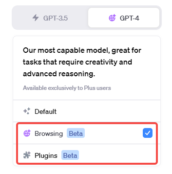 然后你新建一个chat时,在GPT-4选项下,就可以看到两个新的功能了。