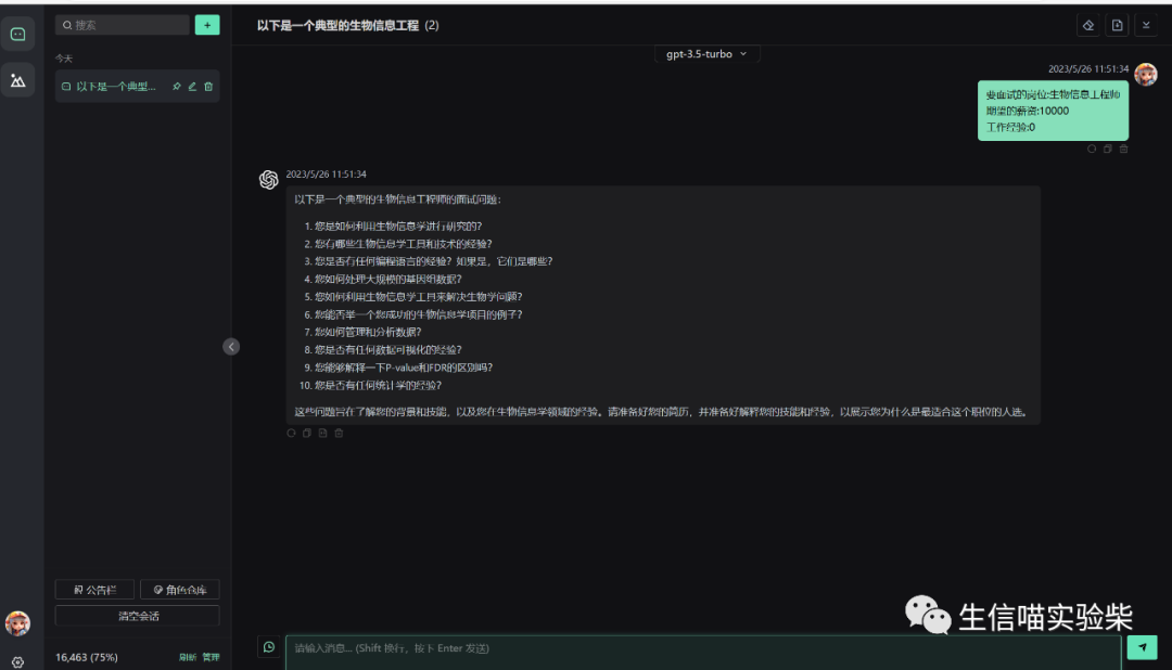 比如我们要求职,我们可以打出岗位,薪资,工作经验等描述。交给chatgpt,点击发送