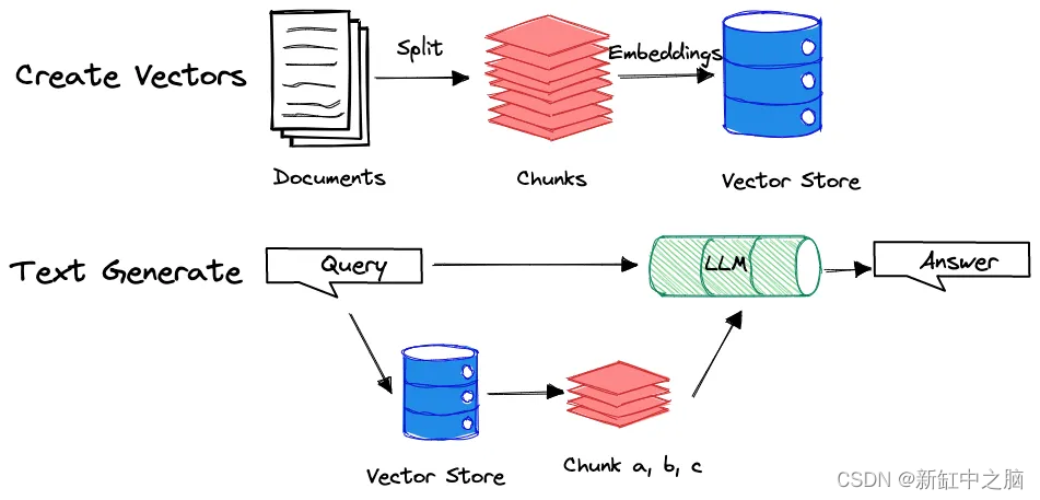 当提示用户查询时,模型将搜索向量存储以找到最相关的块并根据这些特定块生成答案。例如,如果你在大型文档(如 20 分钟的视频转录本)上查询“文章摘要”,模型可能只会生成最后 5 分钟的摘要,因为最后一块与上下文最相关 的“总结”。