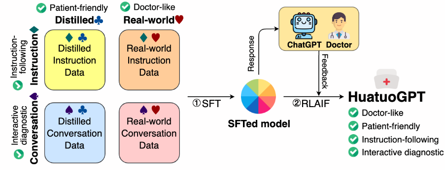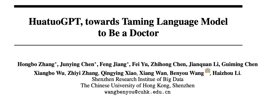 香港中文大学(深圳)和深圳市大数据研究院所在的王本友教授团队训练并开源了一个新的医疗大模型 ——HuatuoGPT(华佗GPT),以使语言模型具备像医生一样的诊断能力和提供有用信息的能力。