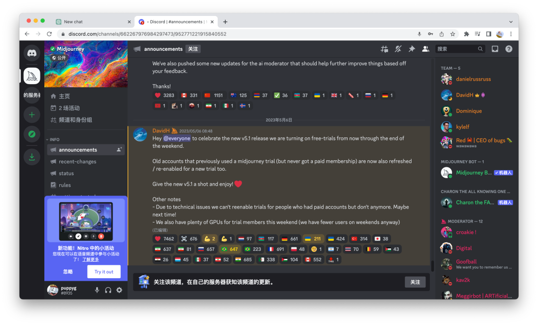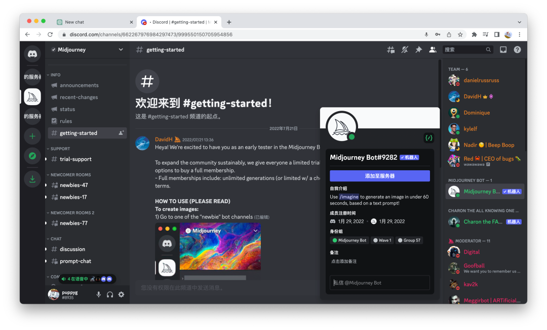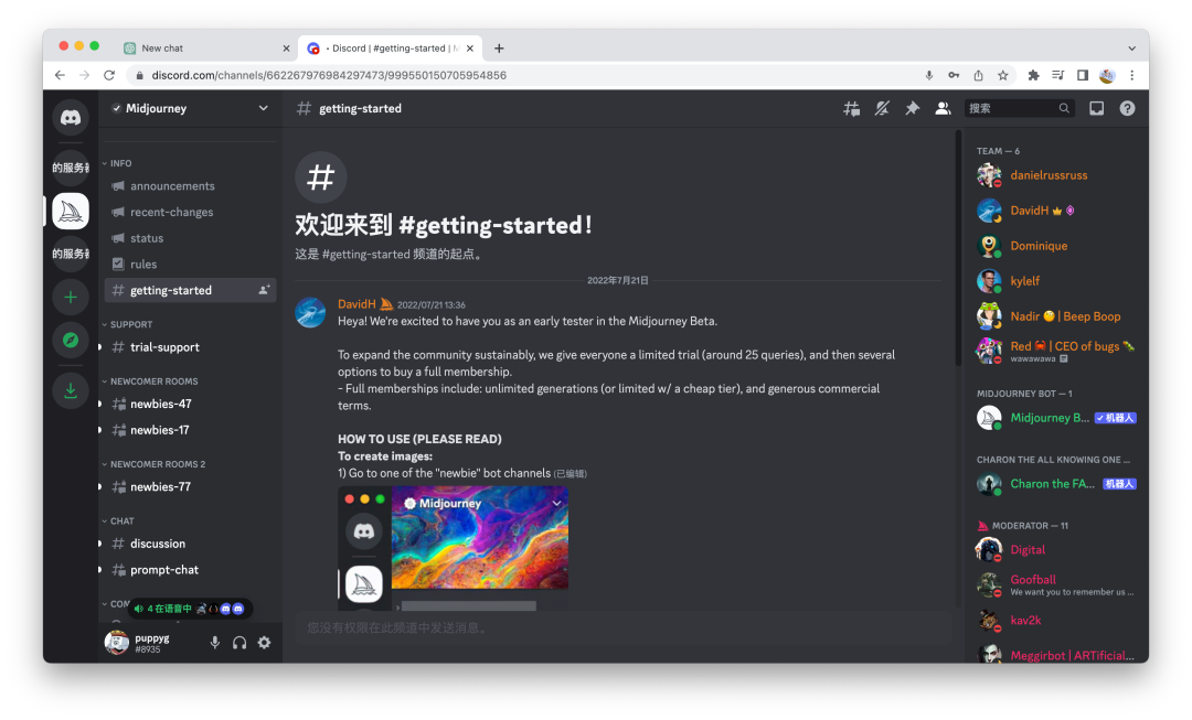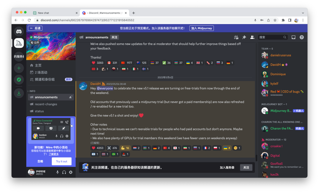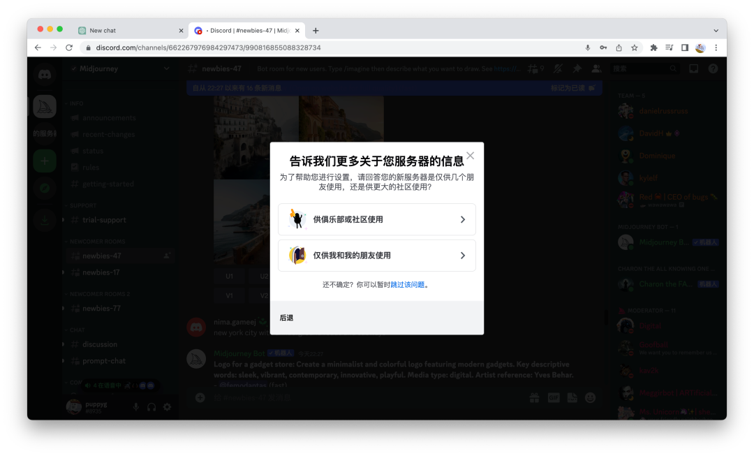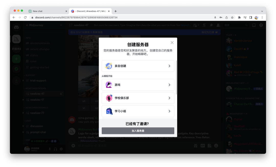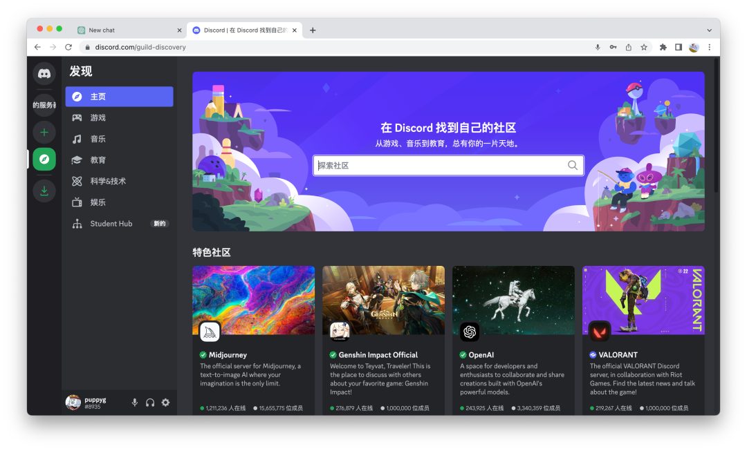 首先登录discord.com,在主页搜索Midjourney,由于Midjourney大受欢迎,它正处于特色社区的第一位。