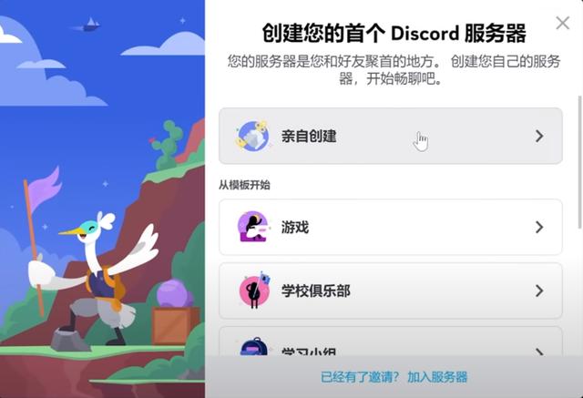 STEP 1:创建账号后,会弹出这个页面创建服务器(这里可以选“亲自创建”也可以从下面模板里面选,哪个都可以)。