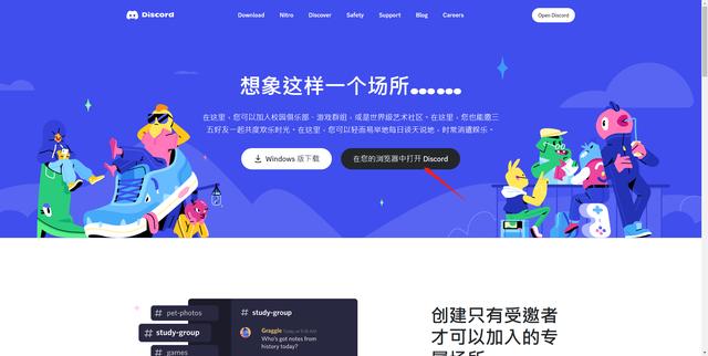 STEP 1:进入Discord官网后选择在浏览器中打开。