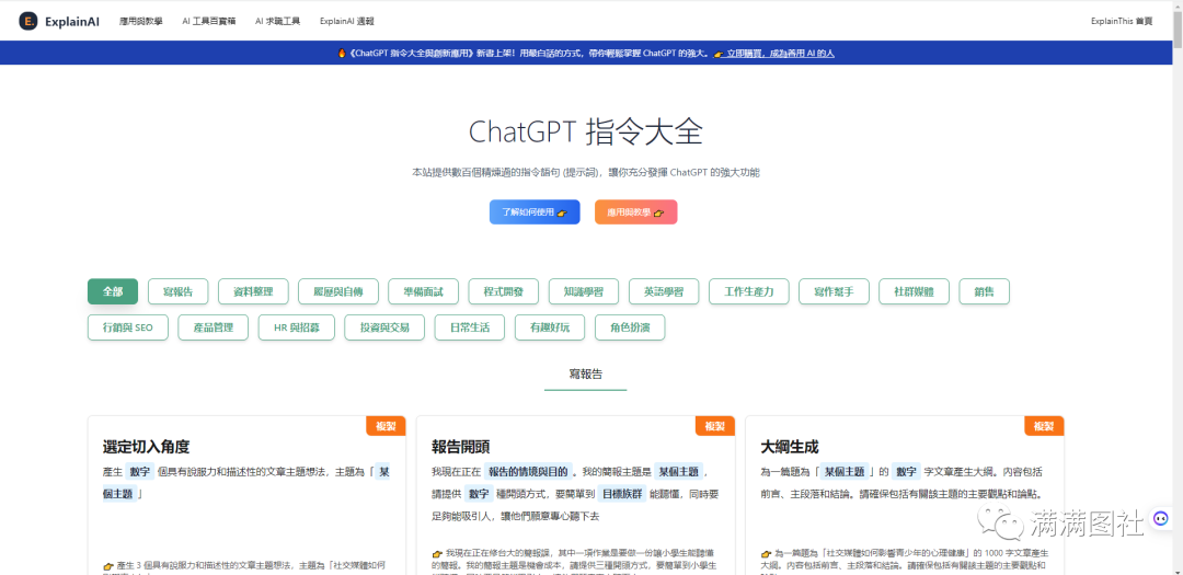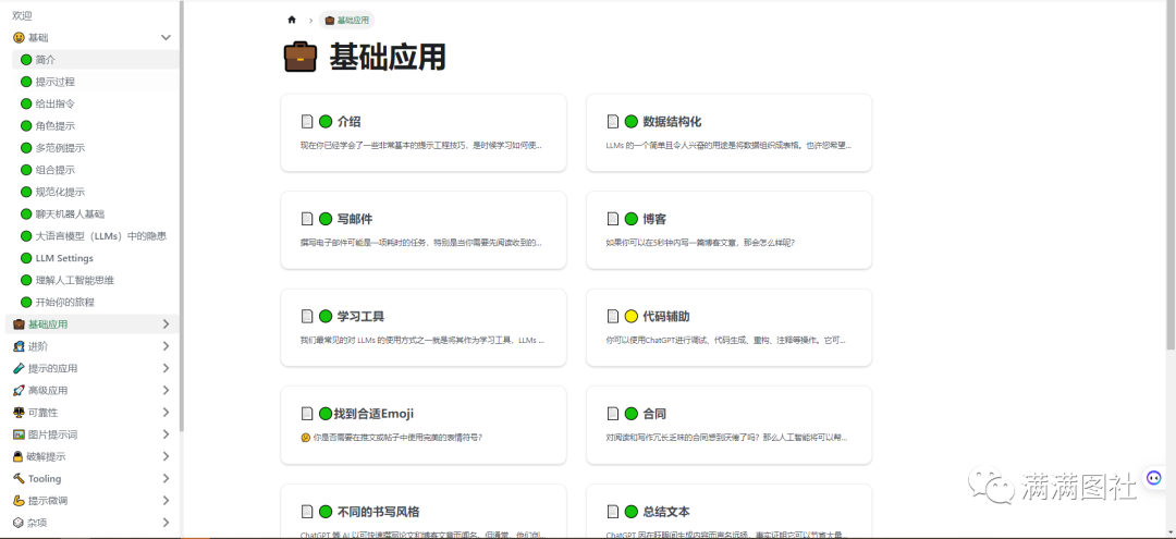 第一个learn prompting,我愿称之为目前全世界最好的chatgpt教程网站,甚至比吴恩达老师的《chatgpt提示工程师》课程还要好。这里有非常详细的cheatgpt使用教程,从基础、进阶再到高级的使用教程,提示词、指令、技巧全都有,网站还都做了详细的分类,每个教程都图文并茂,用最简洁的语言来讲解,并翻译成了中、英、日、韩等十种语言。
