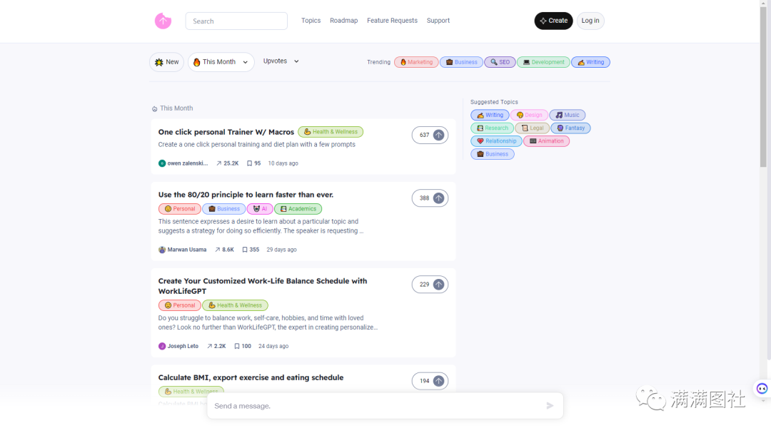 第二个SnackPrompt,这是一个chatgpt提示词分享社区,每天都有人在这里分享很多新奇好玩的chatgpt使用方法,不管是写作、营销、商业设计,还是交友、法律等,都可以在这找到最新玩法指令。比如这个月最受欢迎的是这三个有点像chatgpt提示词领域的producthunt,喜欢学习新奇chatgpt玩法的千万不要错过。