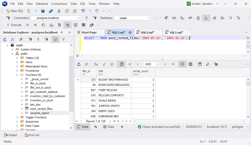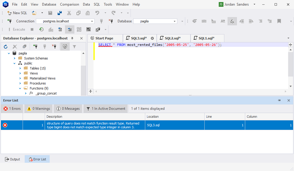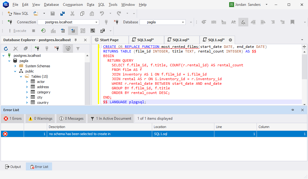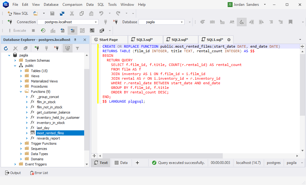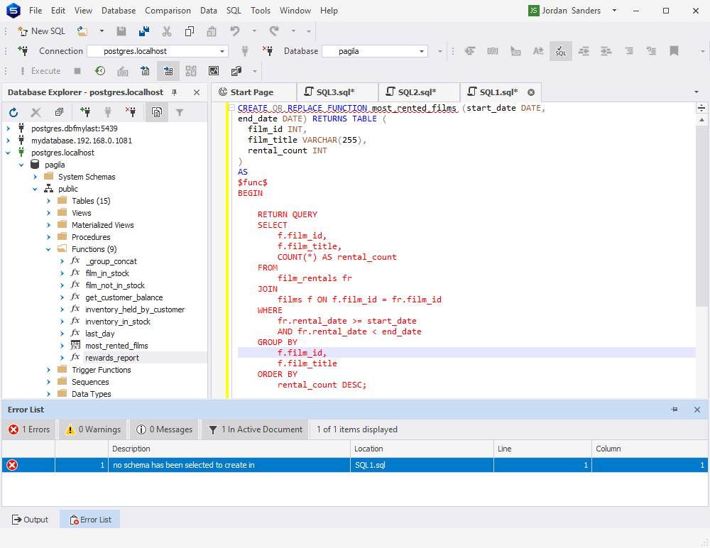 现在让我们打开 dbForge Studio for PostgreSQL 并验证 AI 创建的代码。