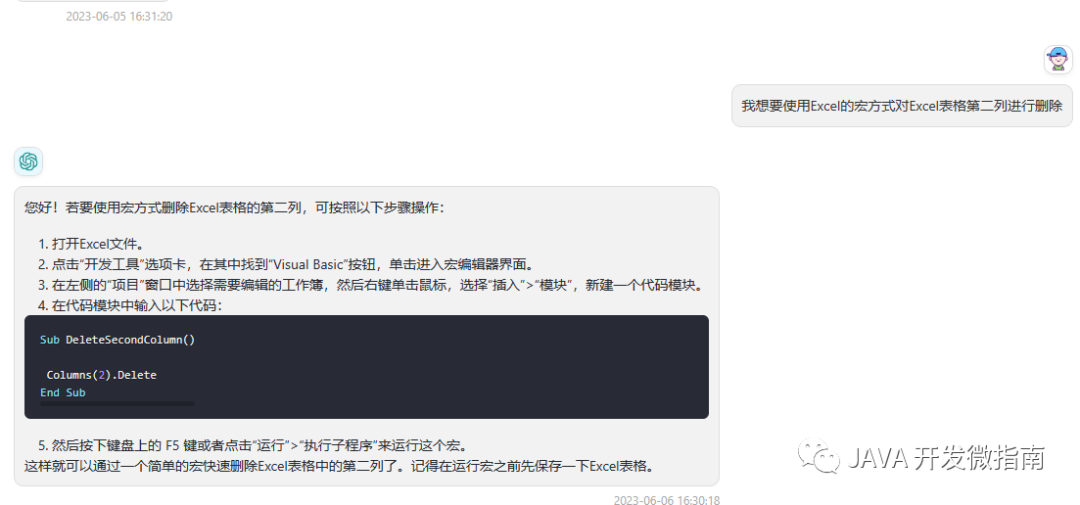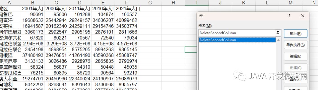 按照 ChatGPT 反馈的流程一步一步下来,我们直接在 excel 中运行宏后,直接就删除了第二列数据: