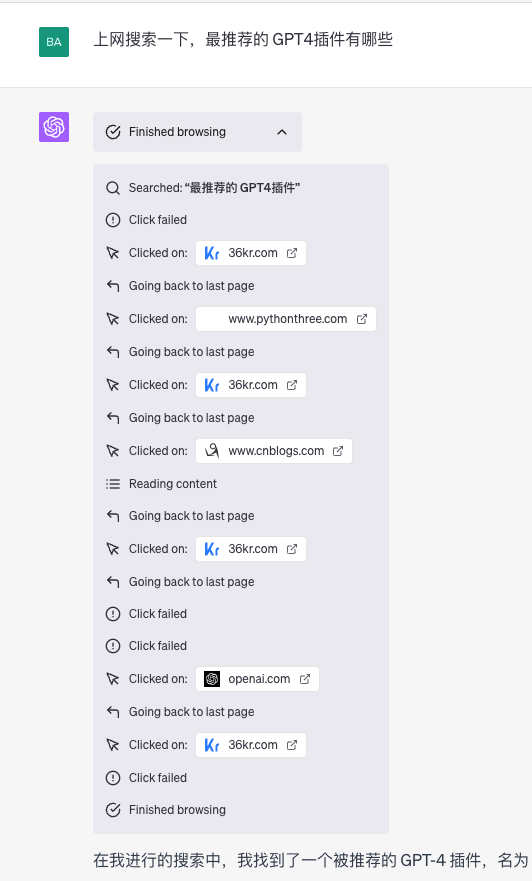 此时,浏览器插件就像 auto-gpt 或者 agent-gpt,去尝试寻找答案。