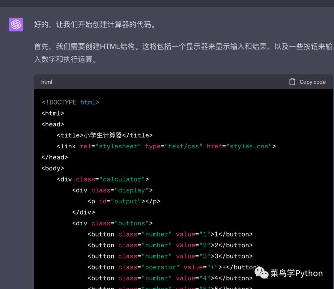 比如我们要设计一个小学生的计算器的想法的网站,只需要说一下你的点子即可。分分钟给你输出可以用的代码。