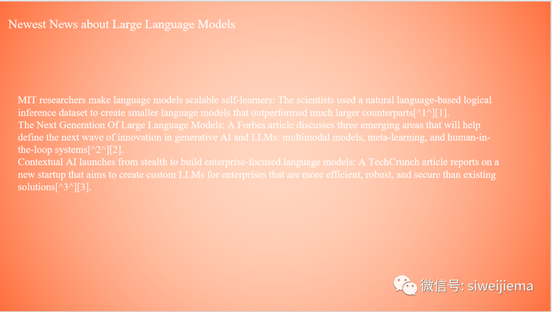 至此,一个只需要人提供指导就有版式、有最新资料、有表、图的 PPT 就完成了。
