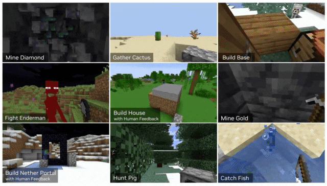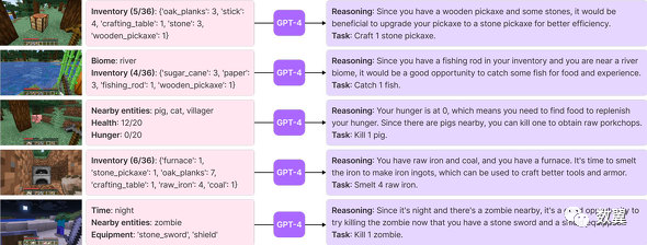研究团队描述了 Minecraft 的特点如下。『与使用 AI 研究的许多其他游戏不同, Minecraft 提供了一个独特的游乐场,拥有无限的可能性, 而不是强加预定义的最终目标或固定的故事。现实的终身学习代理必须能够在这些游戏中表现得与人类一样好。』