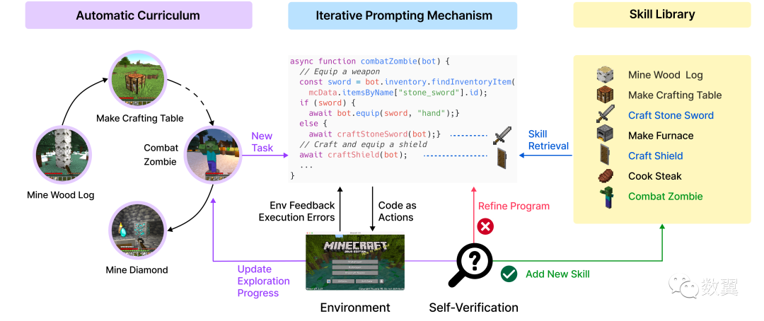 由 NVIDIA 领导的研究团队开源了 Voyager, 这是一种基于大语言模型 (LLM) 的终身学习代理。Voyager 在没有人为干预的情况下不断探索世界,在流行游戏 《我的世界》 中学习不同的技能并取得新发现。