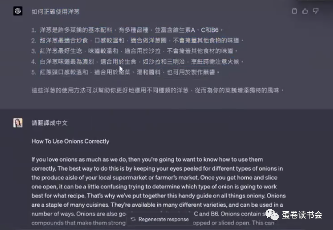直接把需要翻译或文章内容,丢给ChatGPT,让它就可以帮你翻译,或总结出几个要点。