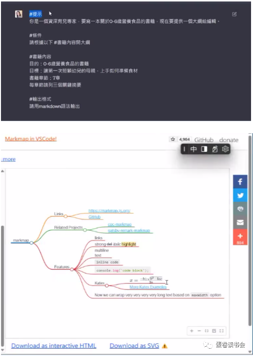 用markdwon格式输出,可以直接复制到markdwon粘贴,就可以生成思维导图。