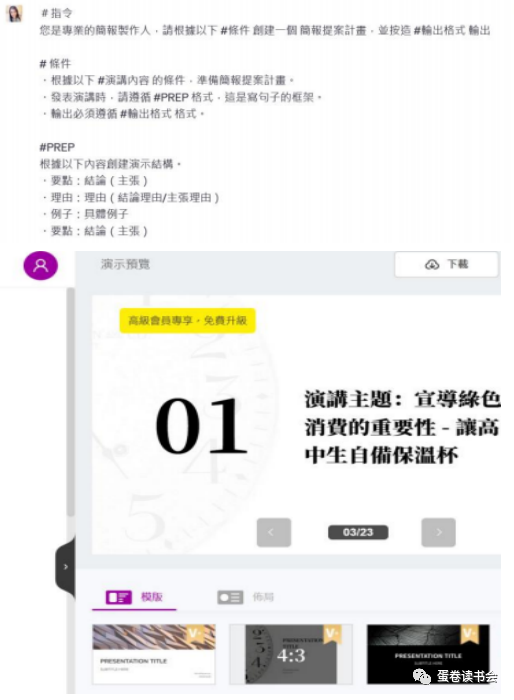 生成PPT,也需要用markdwon格式输出,然后,直接复制到markdwon粘贴,就可以PPT。