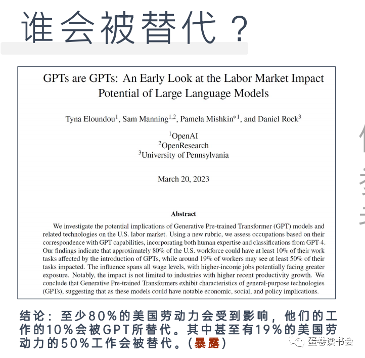 美国有过一个报道,称至少80%的美国劳动力也会受到影响。