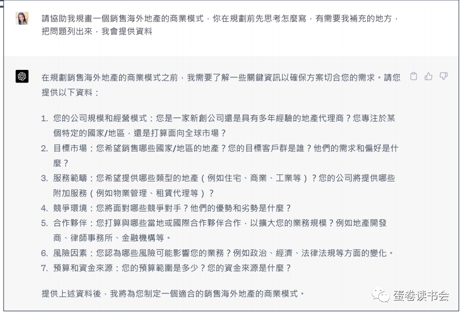 当你不知道怎么提问时,你以让ChatGPT来告诉你,你需要准备什么资料,让它来引导你去使用它。