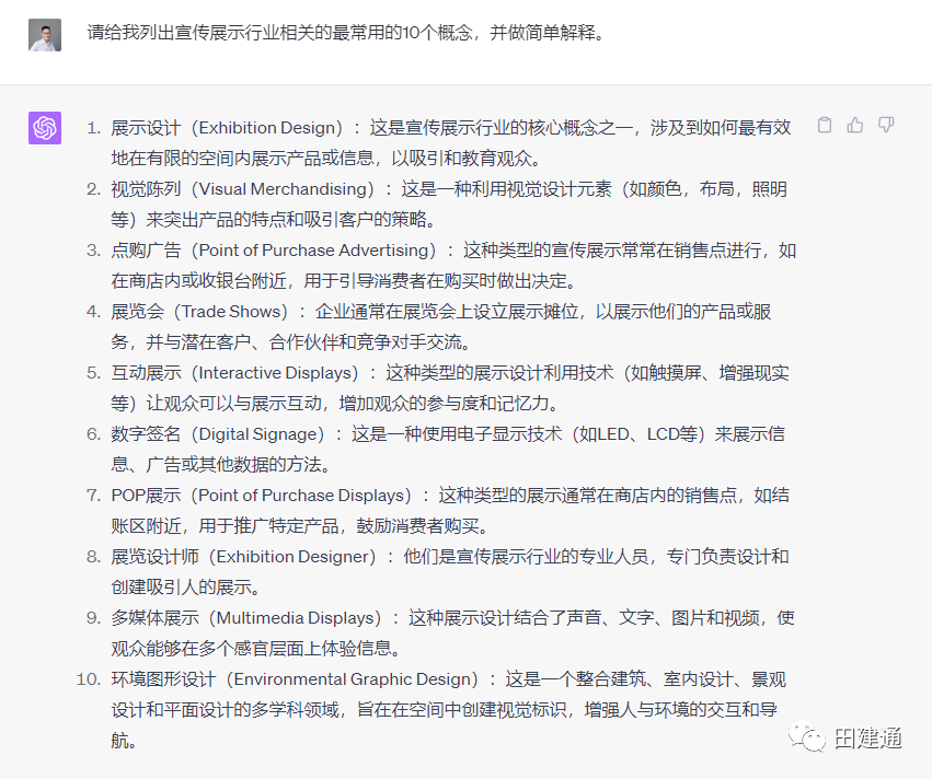 2、请给我列出宣传展示行业相关的最常用的10个概念,并做简单解释。