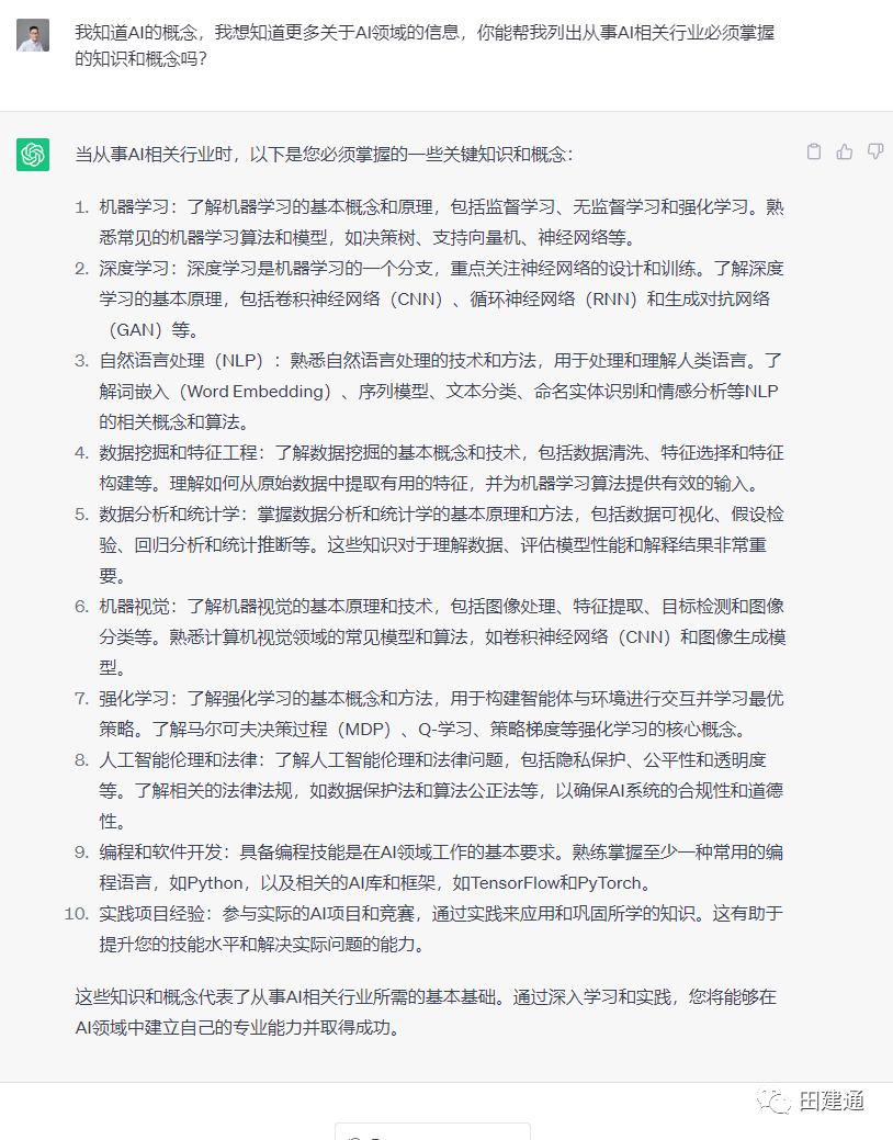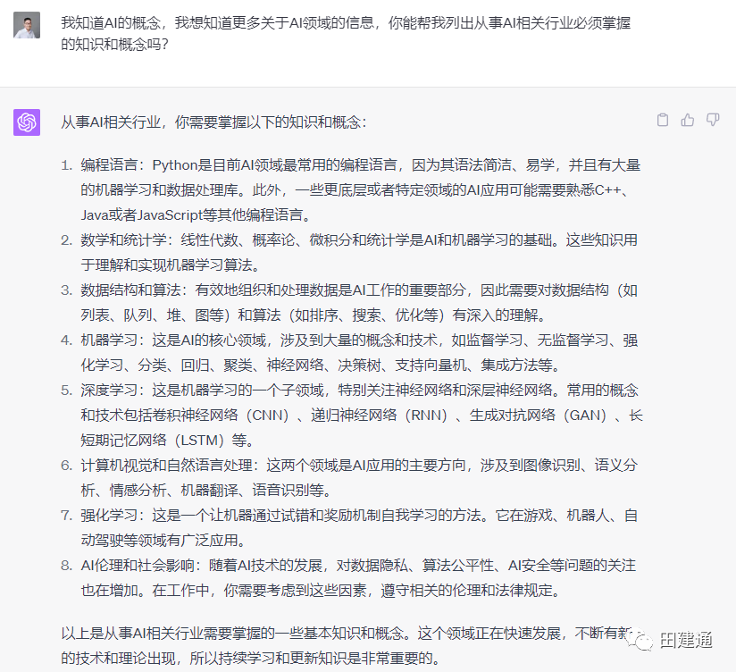 6、我知道AI的概念,我想知道更多关于AI领域的信息,你能帮我列出从事AI相关行业必须掌握的知识和概念吗?