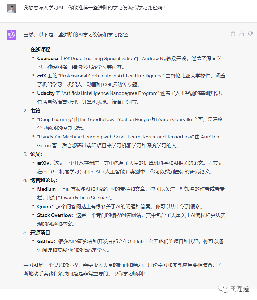 8、我想要深入学习AI,你能推荐一些进阶的学习资源或学习路径吗?