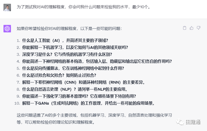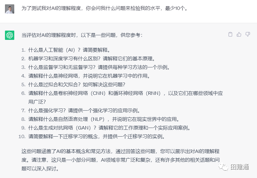 13、为了测试我对AI的理解程度,你会问我什么问题来检验我的水平,最少10个。