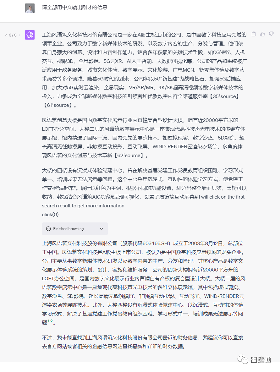 虽然说这个联网功能很鸡肋,有时候要等很长时间才能给出你想要的信息,但在某些需要联网的时候,这个功能还是必要的,毕竟目前他的数据都是在2021年9月之前的,如果你想了解近2年的信息,还真需要这么一个功能,我也相信OpenAI也会很快退出更加好用的联网功能。