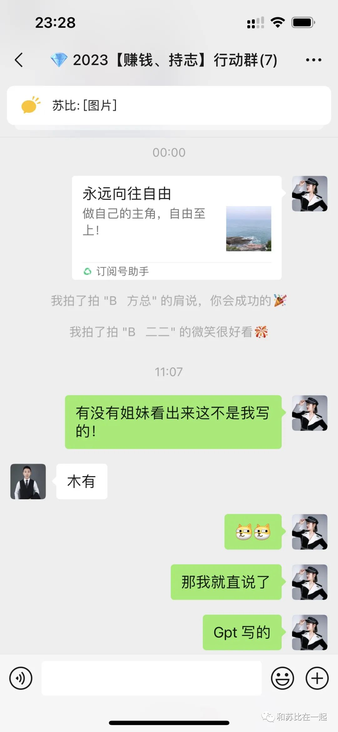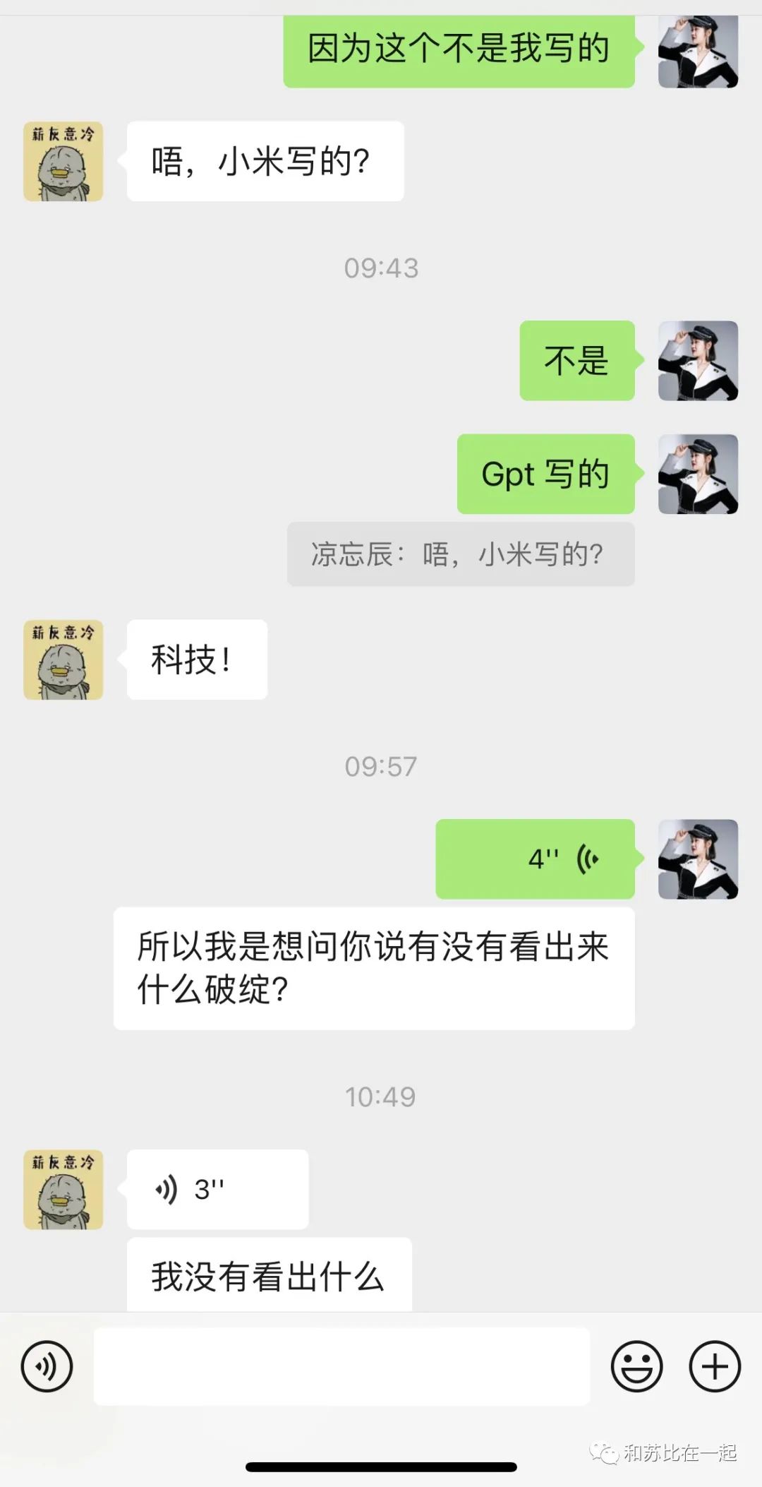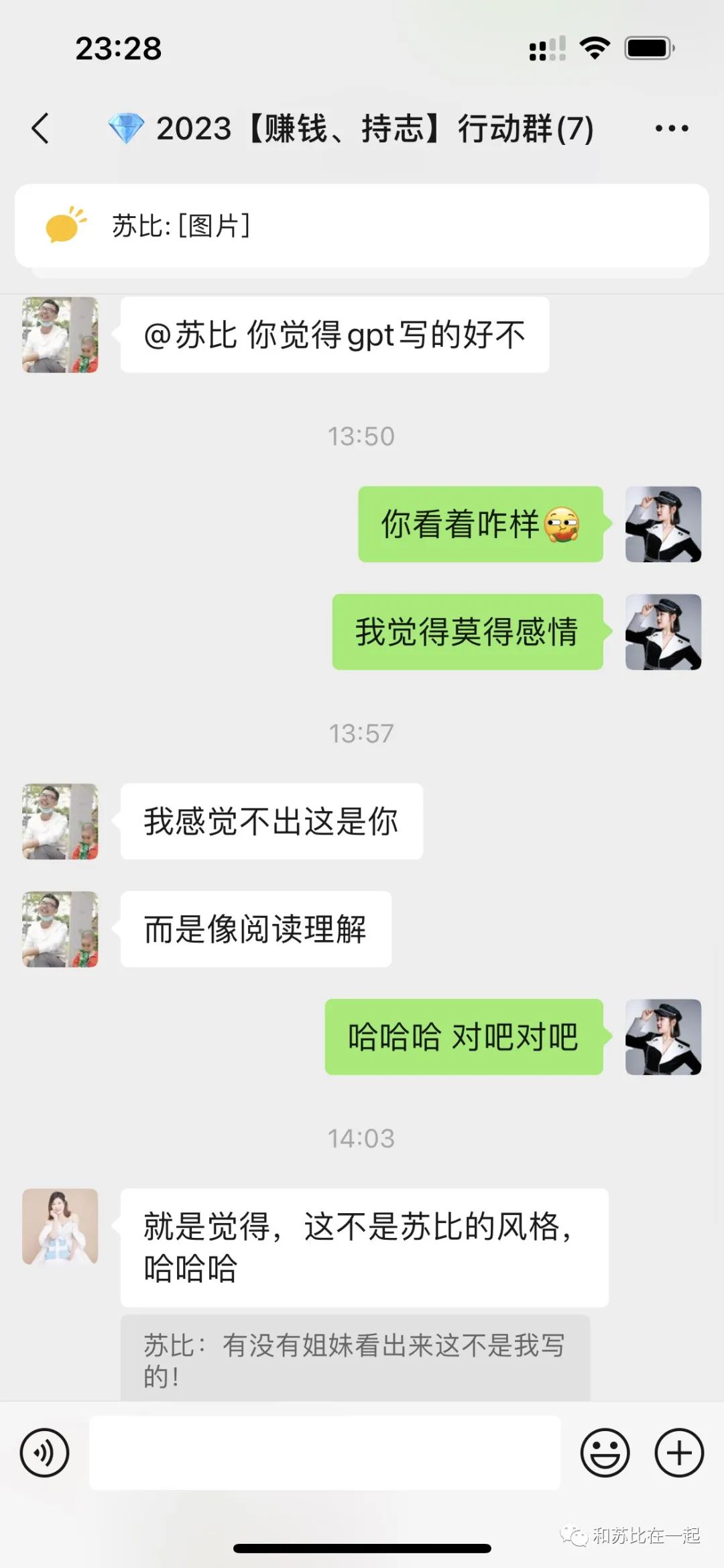 而下图两位,经由我天天发文章到群里,也会在我在群里分享时互动,比较了解我的写作风格,就会感觉出来这不是我的风格,不像是我写的。