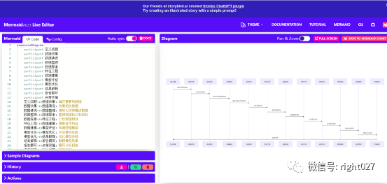 也可以单击“如果您想对此流程图进行任何更改,可以在线编辑。”链接,打开后,可以直接在左侧进行修改,即可在右侧看到生成结果。
