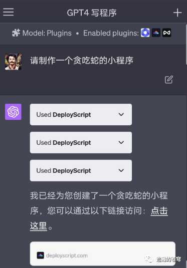 总结:今天主要分享了 GPT 插件 DeployScript,一款一句话生成 web 程序的插件。