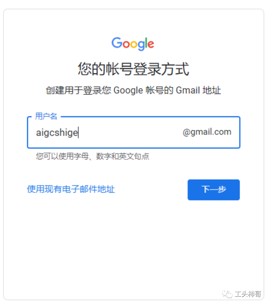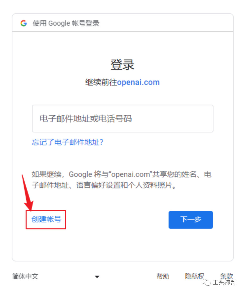 4. 直接在框里输入你的谷歌账号,如果没有,那我们新建一个,点击「创建账号」![]()