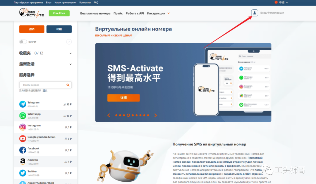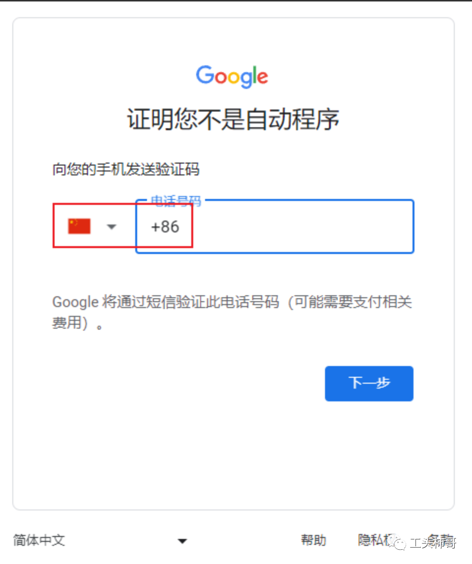 8. 关键步骤来了,由于不支持国内的服务,我们需要搞定一个海外可以接收验证码的手机号![]()