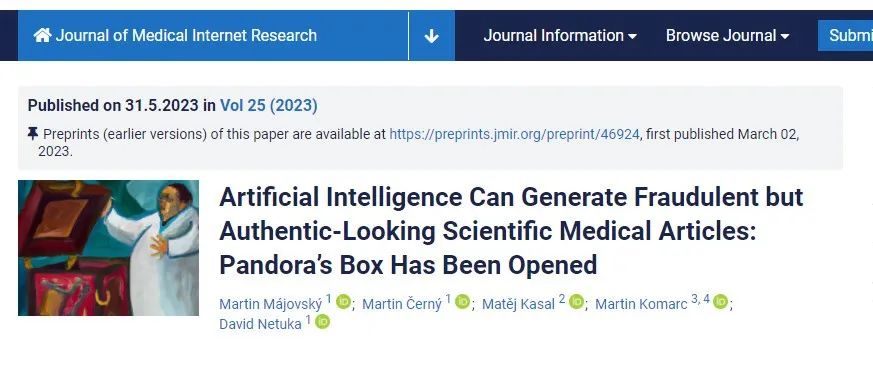 2023年,《J Med Internet Res》(IF=7.4)在线发表了一项关于ChatGPT的文章。研究者利用ChatGPT生成了一篇完整的神经外科论文,在用词、句子表述、论文结构方面都与真正的医学论文非常相似,包含1992个词和17篇参考文献,整个文章创建过程大约花了1个小时。不过,参考文献还是有很多问题。