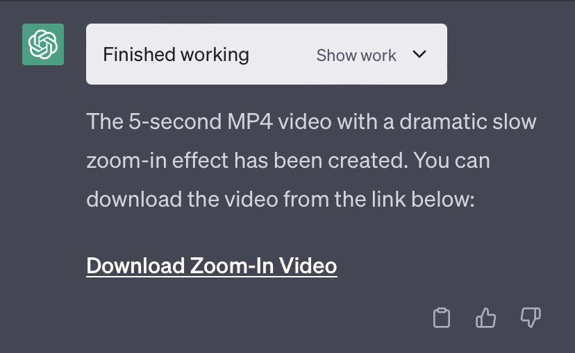 网友给ChatGPT的提示为:我上传一个GIF,你给我一个5s的MP4,用一个故事性镜头缓慢放大。