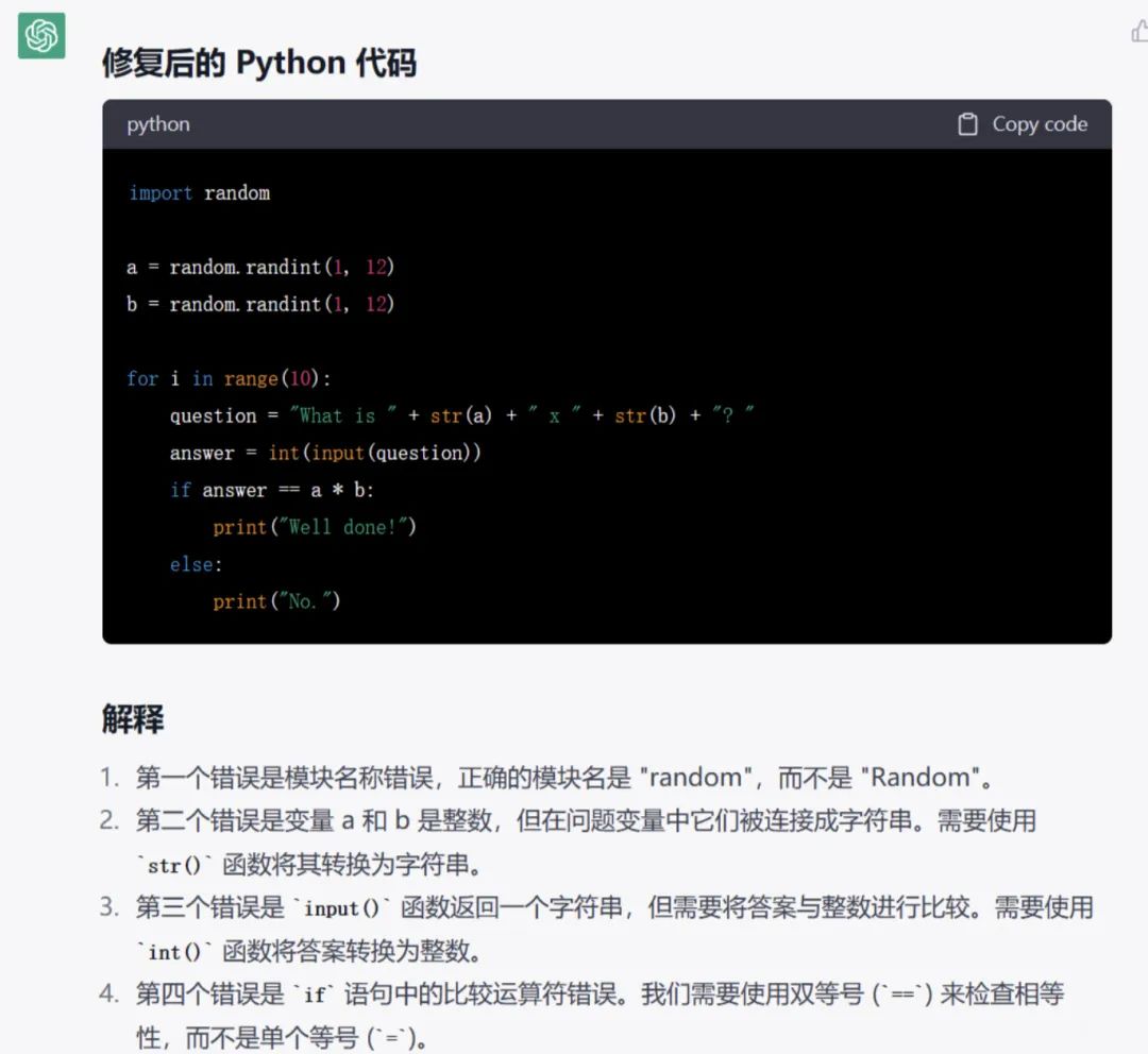 用途:写完一段代码后发现有错误?让chatGPT来帮你!