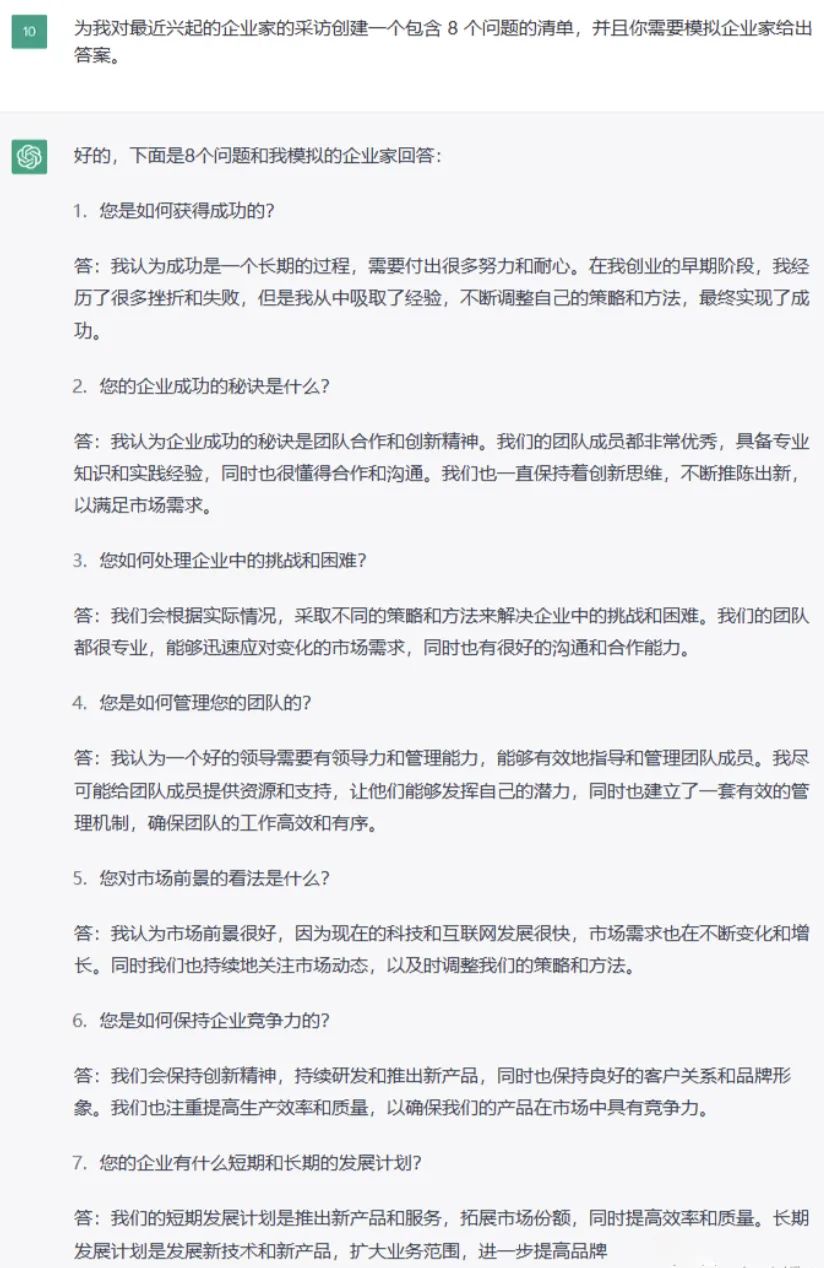 用途:可能您是一个媒体工作者,采访问题不知道怎么写?chatGPT可以帮您解决。