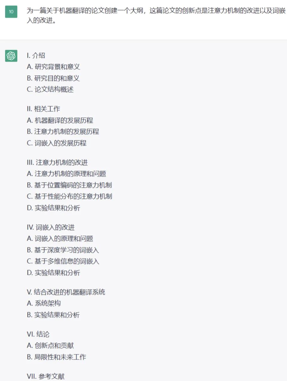 用途:这个功能对于研究生简直不要太爽了,一直在郁闷大纲怎么写,直接列出来大纲简直帮了我天大的忙!对于大纲中不理解的点,直接要求chatGPT给出进一步解释。代码也可以有!那一章的内容不太会写,直接让chatGPT安排,这样,一篇论文很快就写出来啦!