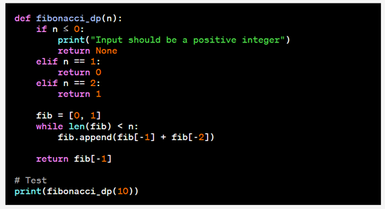 然而,这种递归解决方案效率不高(由于重复计算,其时间复杂度呈指数级),特别是对于较大的值n。这是使用动态编程的更有效的版本(具有线性时间复杂度):