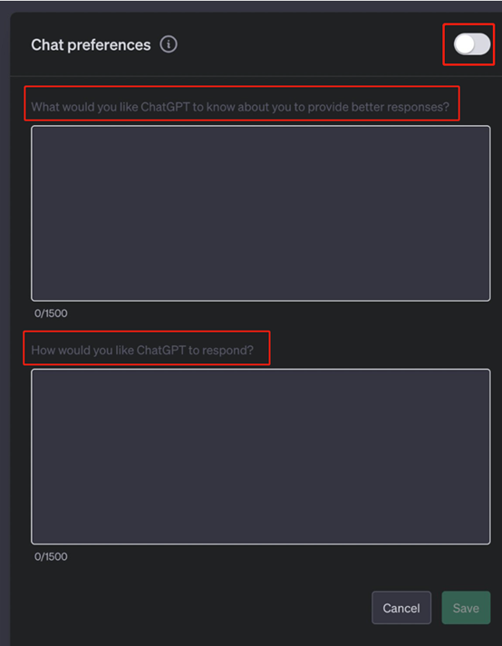 OpenAI可能会使用用户的自定义指令,来提高模型的性能。但用户可以通过数据控件禁用此功能。与 ChatGPT 对话一样,OpenAI会采取措施删除自定义指令中找到的个人标识符,然后再将其用于提高模型性能。